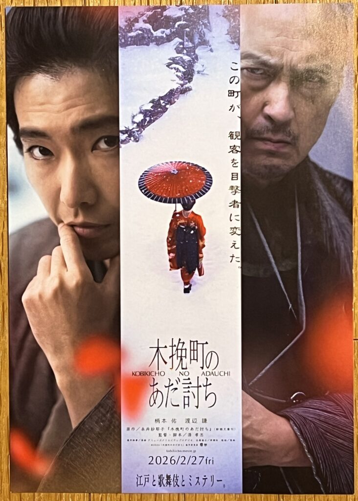 27日に行ったシネコンで、予想もせず不意をつかれたことがあった。あの『国宝』を、1日に1回だけど、まだ上映していたからだ。昨年6月6日の公開から9か月、異例のロングランだ。それもあったからか、お目当ての『木挽町のあだ討ち』を観ながら、『国宝』との共通点をいくつも感じることになった。