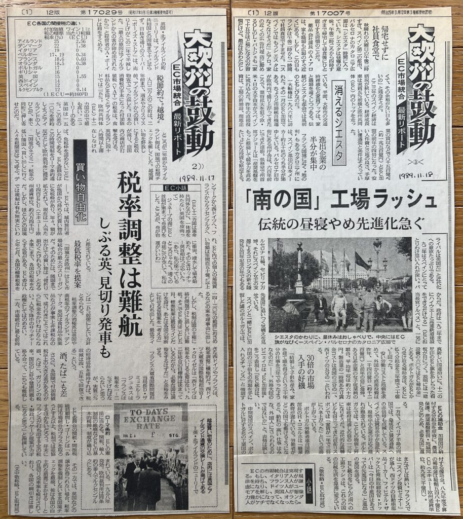 <▲1989年の1面連載『大欧州の鼓動』/先輩と連名>
