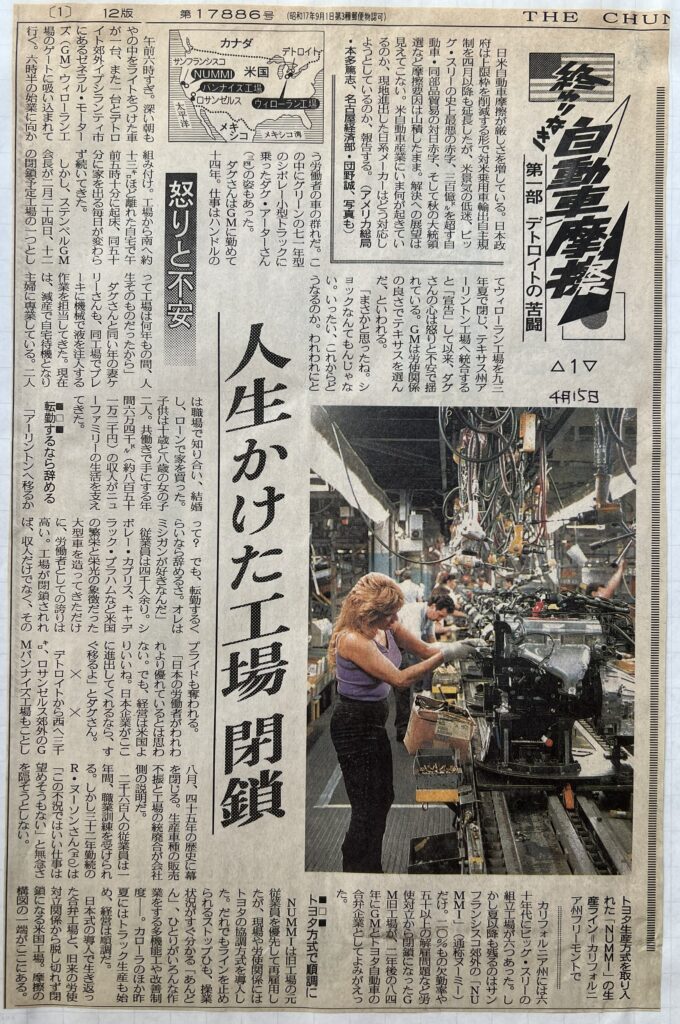 <▲1992年の1面連載『終わりなき自動車摩擦』/先輩と連名>
