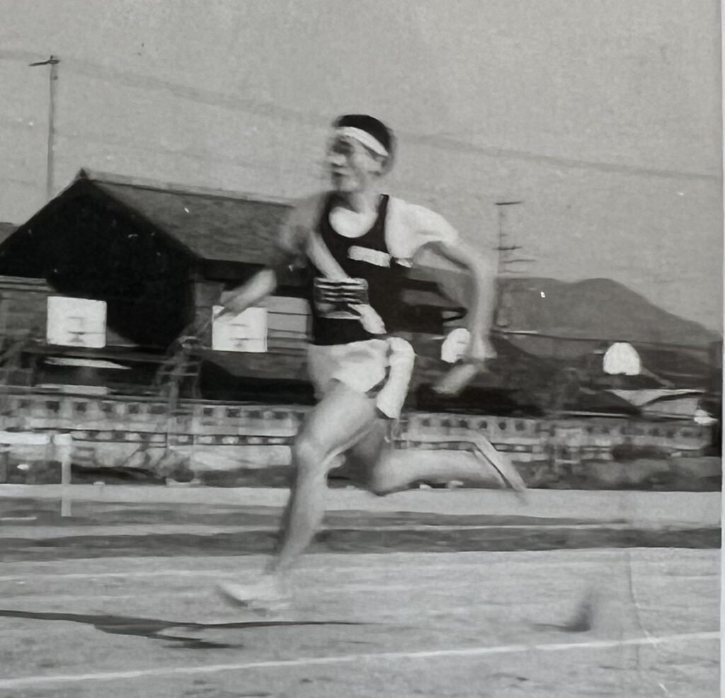 <▲(左)高3夏近畿大会の幅跳び (右)高3夏両丹大会4×400リレー(第1走者)>
