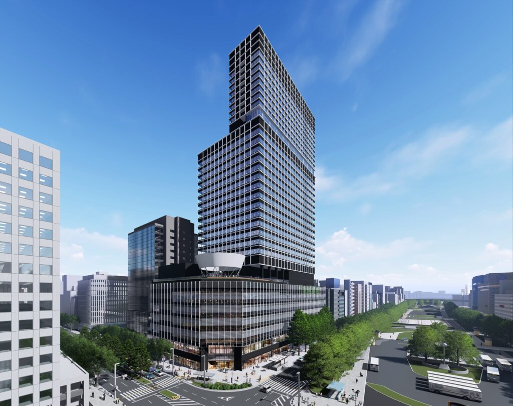 <▼新中日ビルの完成予想図=2019年2月の記者会見で発表>